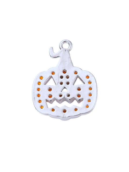 Silver and Orange Rhinestone Jack-o-Lantern Charm