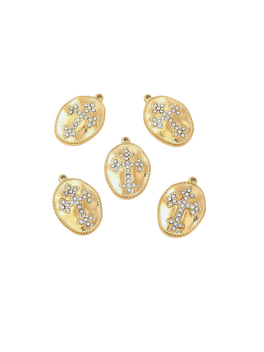 Gold Oval Ornate Cubic Zirconia Cross Charm